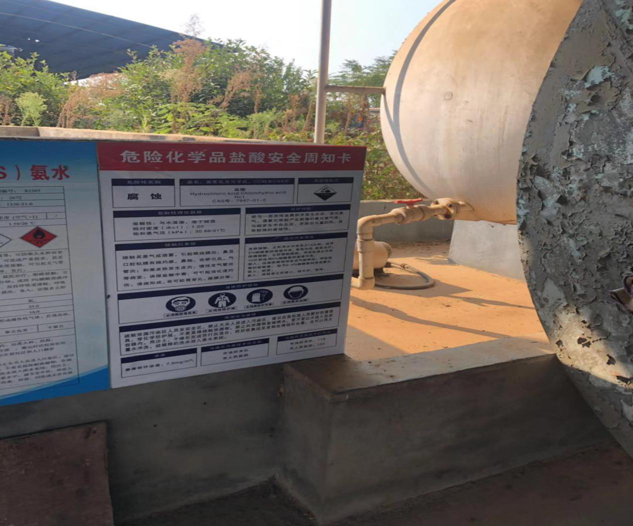 鹽酸儲罐玻璃管無保護(hù)套,不能防腐蝕。無鹽酸安全周知卡
