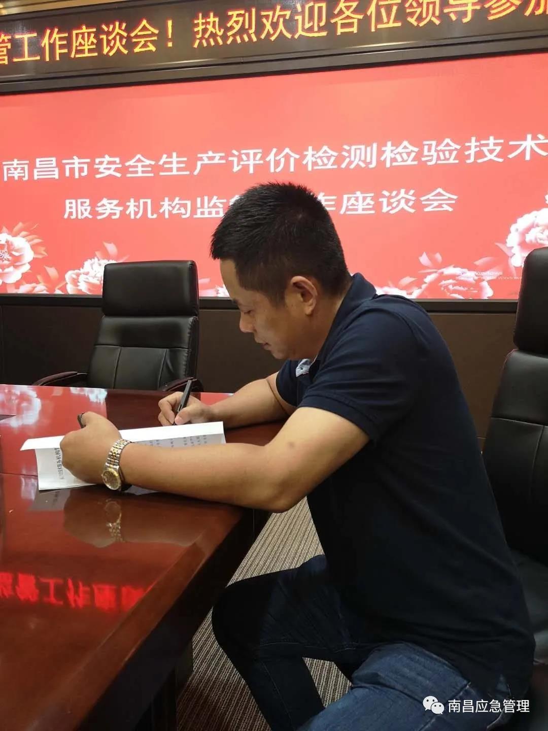 會后,全體安全評價檢測檢驗機構法定負責人還按要求簽訂了《南昌市安全技術服務機構管理承諾書》,對安全評價檢測檢驗相關工作要求進行了書面承諾。