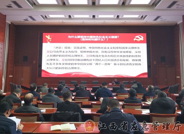黨的十九屆四中全會閉幕后,省應急管理廳黨組理論學習中心組、各基層黨組織和黨員干部認真學習全會公報、《決定》等重要文件,結合實際研究貫徹落實。為幫助大家加強理解、深入貫徹全會精神,11月28日下午,省應急管理廳組織輔導講座,邀請江西省委黨校李志強教授圍繞學習貫徹黨的十九屆四中全會精神作專題輔導。廳領導、廳機關各處室及廳屬單位共120余人參加。 [查看詳細]